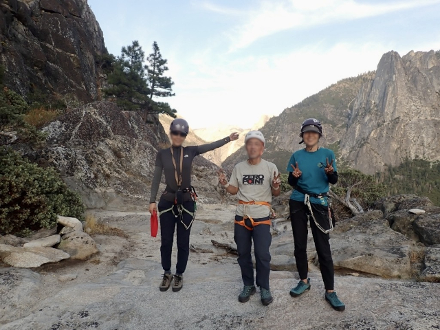 皆熱中症ぎみで後半はヘトヘトだったが、変化に富んだ岩が楽しめる素敵なルートだった。こんなルートがオールナチュラルプロテクションで登れるのは本当に素晴らしい。憧れのヨセミテのクラシックルートを登れた最高の1日。