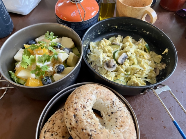 キャンプサイトでは各自、毎食自炊。自炊のおかげで体調も良く、ウェイトも増えなかった。