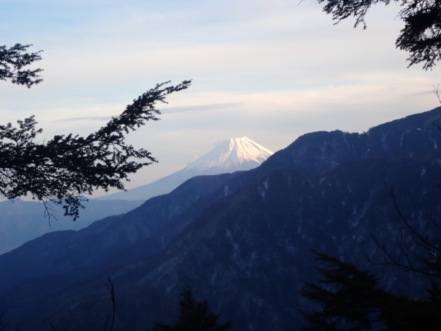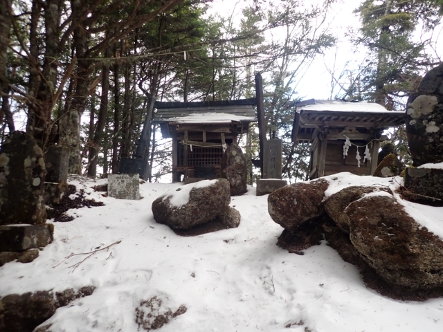 前夜、尾白川渓谷登山口駐車場に着き前泊。駐車場のコンクリートの上にテントを張ったため、明け方の冷え込みが堪えた。朝5時過ぎに駐車場を出発、神社に無事を祈って参拝。