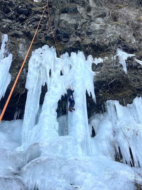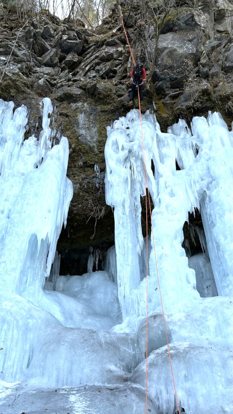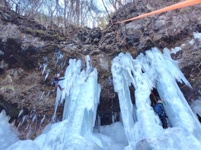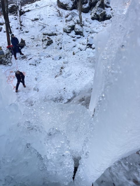 そして登るだけで無く、登った後は空中を楽しんだり、氷柱の裏側に入ってみたり楽しみ方は沢山ある